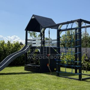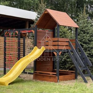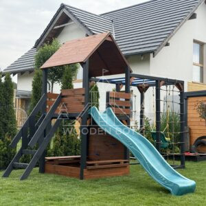 Plac zabaw Zosia to wyjątkowe miejsce zabaw i aktywności fizycznej, które zamieni Twój ogród w prawdziwą krainę dziecięcych przygód. Łącząc w sobie małpi gaj i wieżę wspinaczkową, zapewnia nieograniczone możliwości zabawy i rozwoju dla małych odkrywców. To miejsce, gdzie dzieci mogą bezpiecznie wspinać się, bujać, zjeżdżać i rozwijać swoją sprawność fizyczną pod czujnym okiem rodziców.