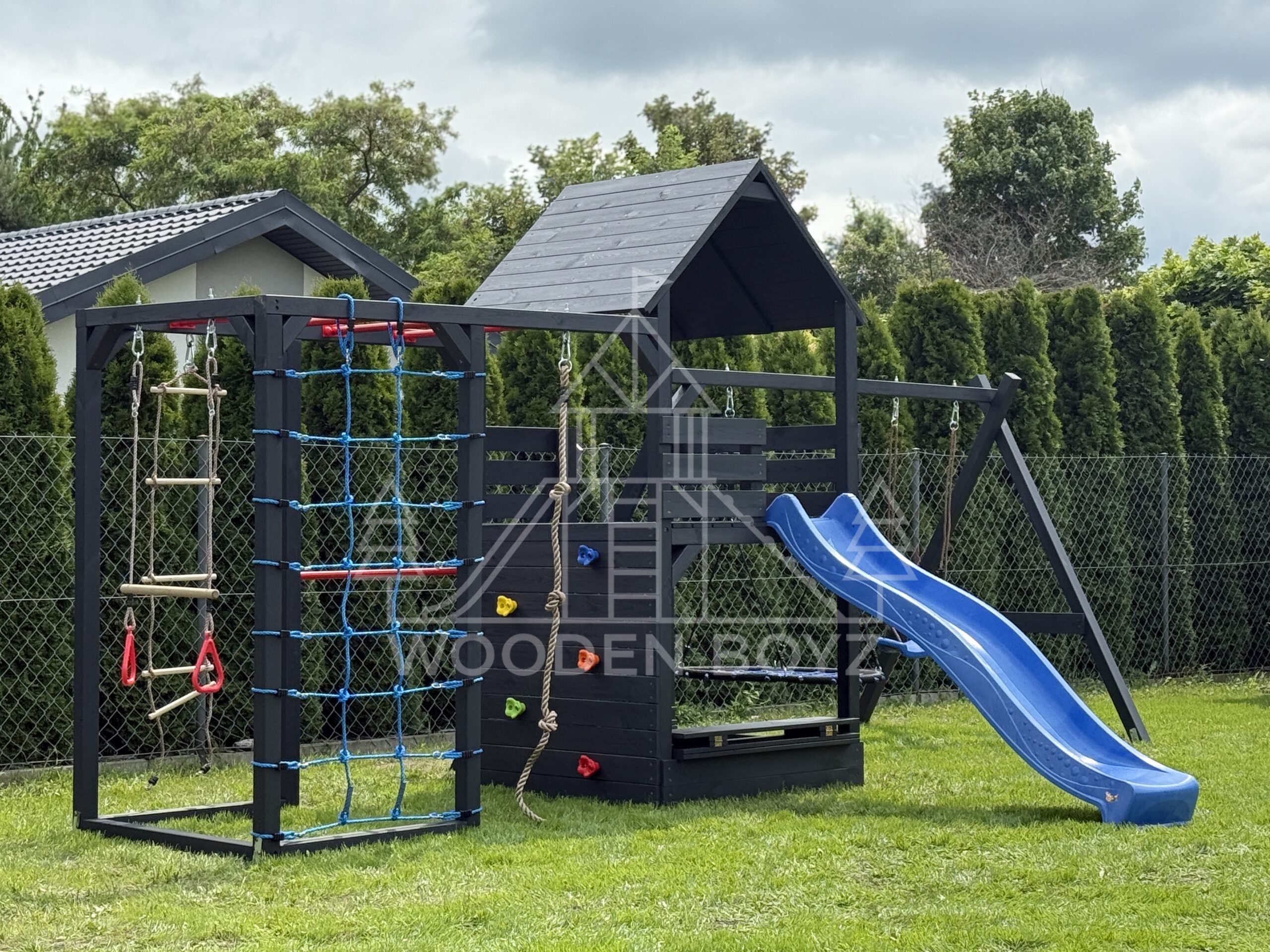 Plac zabaw Zosia to wyjątkowe miejsce zabaw i aktywności fizycznej, które zamieni Twój ogród w prawdziwą krainę dziecięcych przygód. Łącząc w sobie małpi gaj i wieżę wspinaczkową, zapewnia nieograniczone możliwości zabawy i rozwoju dla małych odkrywców. To miejsce, gdzie dzieci mogą bezpiecznie wspinać się, bujać, zjeżdżać i rozwijać swoją sprawność fizyczną pod czujnym okiem rodziców.